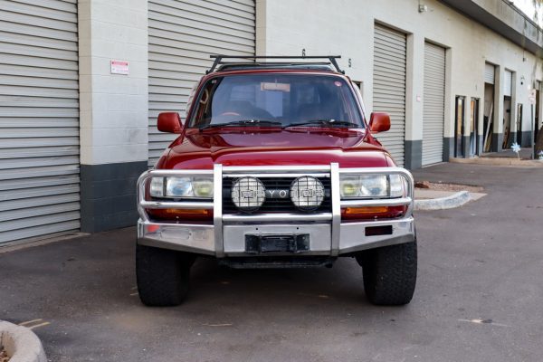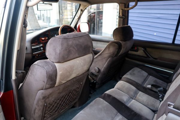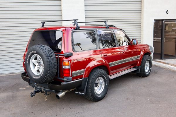 This is a 1991 Toyota Land Cruiser VX Limited in Medium Red Pearl.