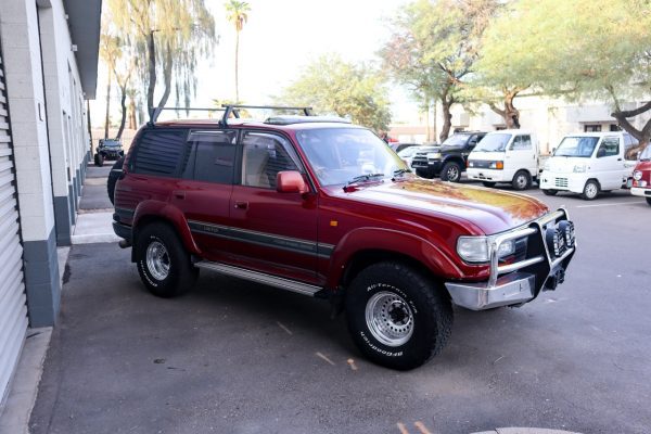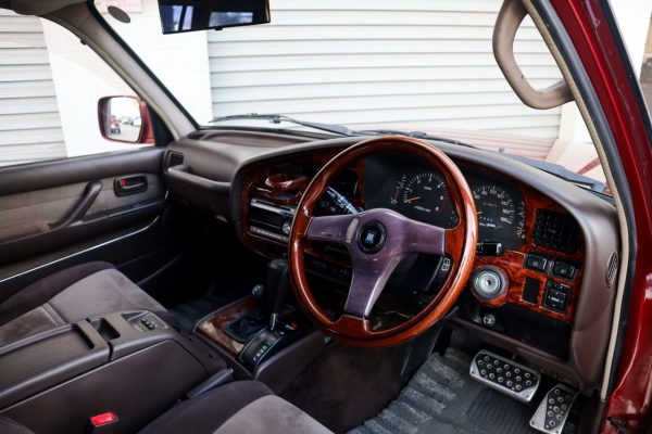 Powered by the 4.2 L 1HD-T turbodiesel (about 165 hp / 363 N·m) paired with the A442F automatic, this right-hand-drive HDJ81 VX Limited delivers strong low-end torque through full-time 4WD and a locking center differential. With 214,000 verified kilometers (≈ 132,900 miles), the drivetrain is just warming up for a diesel Land Cruiser. Medium Red Pearl paint complements the aftermarket alloys, while the cabin gains VX Limited upgrades such as automatic climate control, a power tilt-slide sunroof, cruise, the refrigerated “Cool Box” console, and an altimeter-compass pod. Daily driver, tow rig, or back-country explorer; this truck arrives ready for work and positioned to appreciate in value.