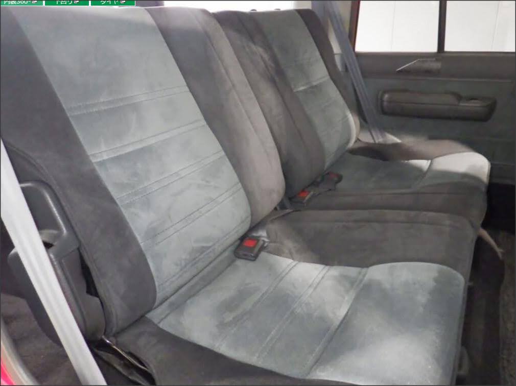 Finished in red with paint matched mirrors and chrome bumpers, this one has a clean, simple look with a few tasteful upgrades. It’s sitting on 16-inch aftermarket wheels with updated tail lights, and the rear tire carrier was removed in Japan for a smoother profile. Inside, it has the classic patterned cloth seats and interior trim typical of this generation.